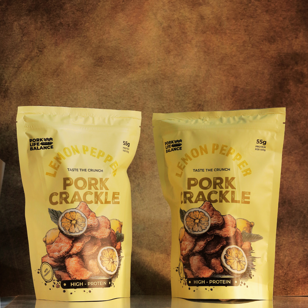 Experience the joy of crunch with Pork Life Balance's Lemon Pepper Pork Cracklings.